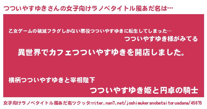 | 男性向けラノベタイトル風あだ名 | 『誰もが恐れるあのつついやすゆきが、ぼくの専属メイドになるようです。』 |