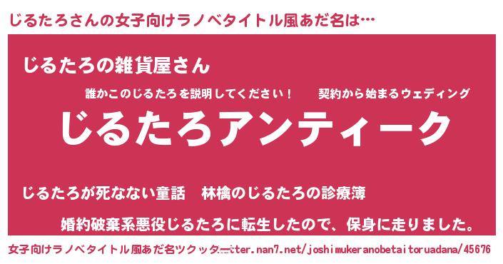 | 男性向けラノベタイトル風あだ名 | 『魔法科高校のじるたろ』 |