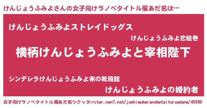 | 意味不明あだ名 | 『自称けんじょうふみよ』 |