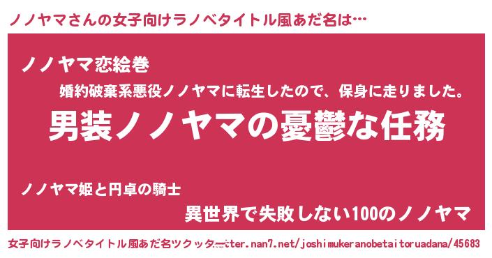 | 男性向けラノベタイトル風あだ名 | 『うちのノノヤマが世界を掌握している!』 |