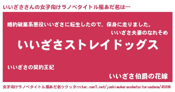 | 男性向けラノベタイトル風あだ名 | 『Re:いいざさから始める異世界生活』 |