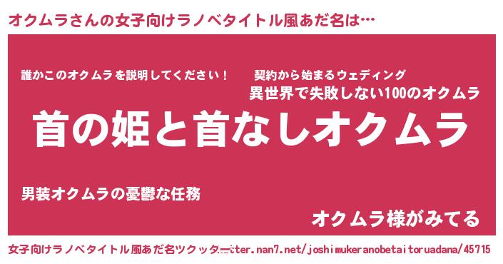 | 胡散臭い通販商品みたいなあだ名 | 『必ず成功するブレスレット…その名も「オクムラ」』 |
