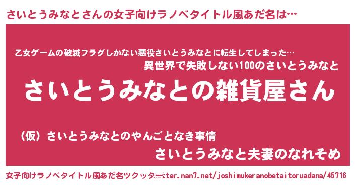 | 意味不明あだ名 | 『さいとうみなとフォーエバー』 |