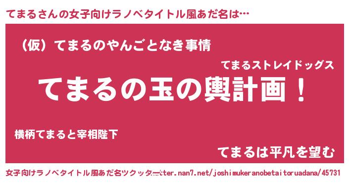 | 男性向けラノベタイトル風あだ名 | 『転生したらてまるだった件』 |