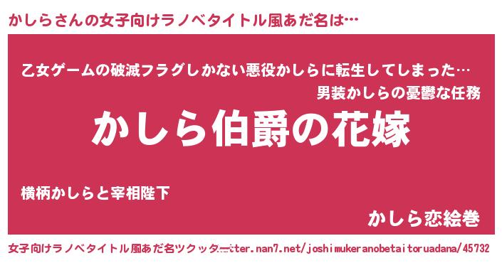 | 男性向けラノベタイトル風あだ名 | 『やはりかしらの青春ラブコメはまちがっている 』 |
