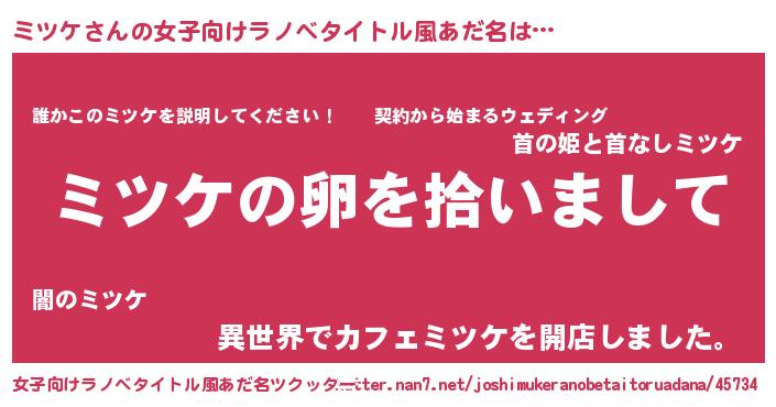 | 胡散臭い通販商品みたいなあだ名 | 『伝統あるサプリメント…その名も「ミツケ」』 |