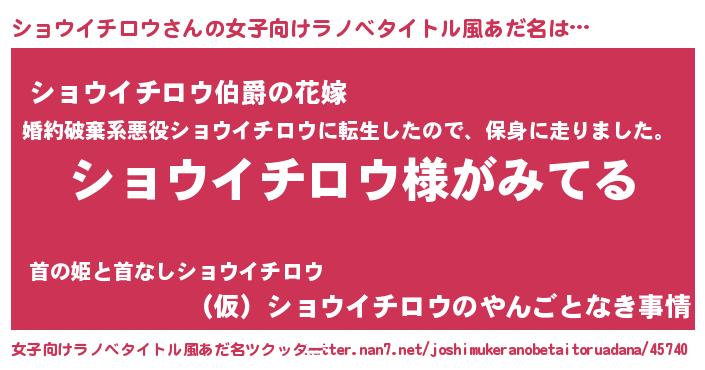 | ヒーロー風カッコイイあだ名 | 『炎刃騎士ショ』『仮面ショダー』 |