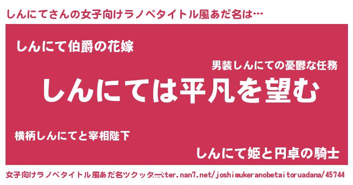 | 胡散臭い通販商品みたいなあだ名 | 『信頼と実績のサプリメント…その名も「しんにて」』 |