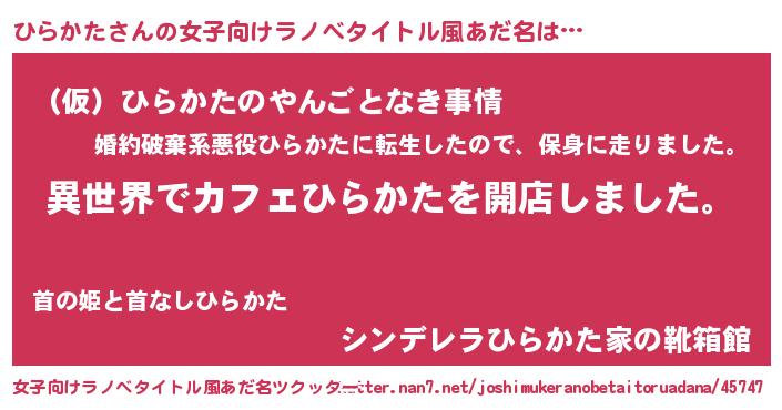| 男性向けラノベタイトル風あだ名 | 『誰もが恐れるあのひらかたが、ぼくの専属メイドになるようです。』 |