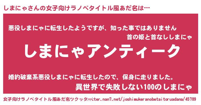 | 意味不明あだ名 | 『自称しまにゃ』『永久保存しまにゃ』 |