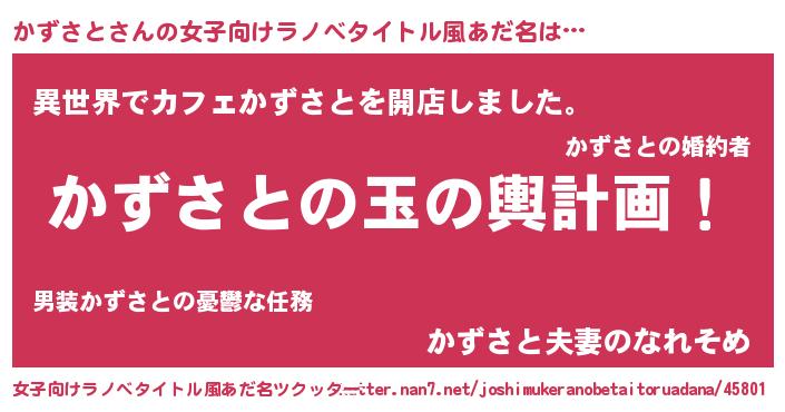 | ヒーロー風カッコイイあだ名 | 『ネオカズサト』『慈愛の使者かずさと』 |