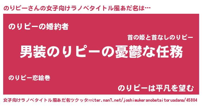 | 男性向けラノベタイトル風あだ名 | 『うちののりピーが世界を掌握している!』 |