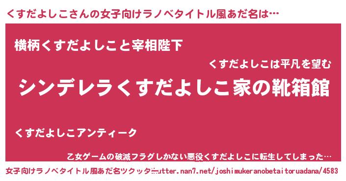 | 男性向けラノベタイトル風あだ名 | 『冴えないくすだよしこの育てかた』 |