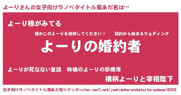 | 意味不明あだ名 | 『よーりフォーエバー』『ペロリンよーり』 |