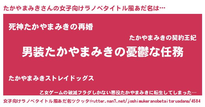 | 男性向けラノベタイトル風あだ名 | 『うちのたかやまみきが世界を掌握している!』 |