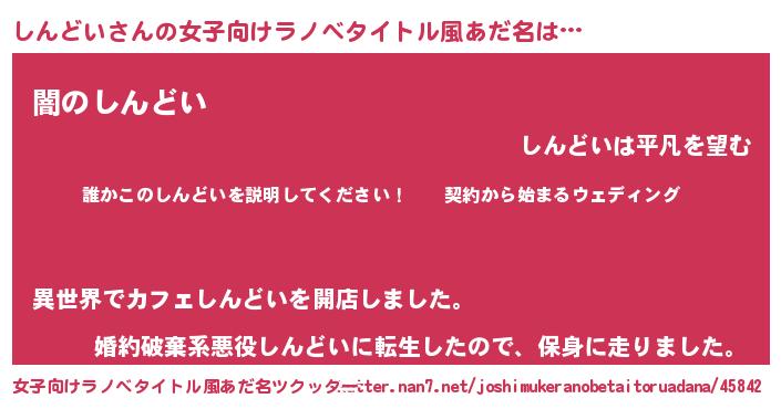 | 男性向けラノベタイトル風あだ名 | 『シンドイアートオンライン』 |