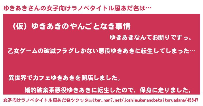 | 男性向けラノベタイトル風あだ名 | 『この素晴らしい世界にゆきあきを!』 |