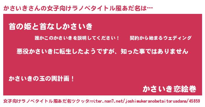 | 男性向けラノベタイトル風あだ名 | 『この素晴らしい世界にかさいきを!』 |