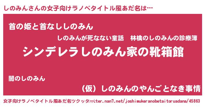 | 男性向けラノベタイトル風あだ名 | 『冴えないしのみんの育てかた』 |