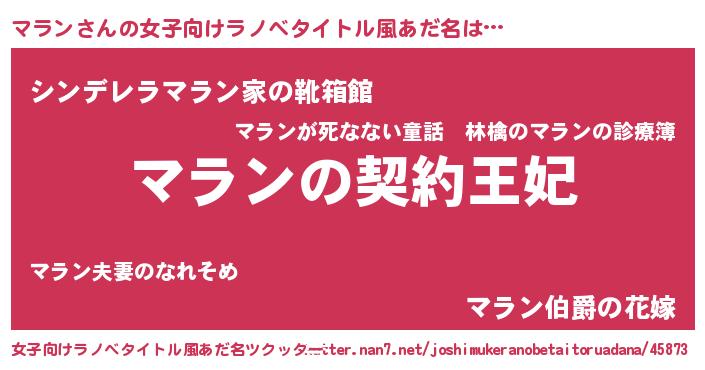 | 男性向けラノベタイトル風あだ名 | 『マランという概念が存在しない退屈な世界 』 |
