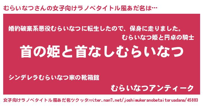 | 男性向けラノベタイトル風あだ名 | 『はたらくむらいなつさま!』 |