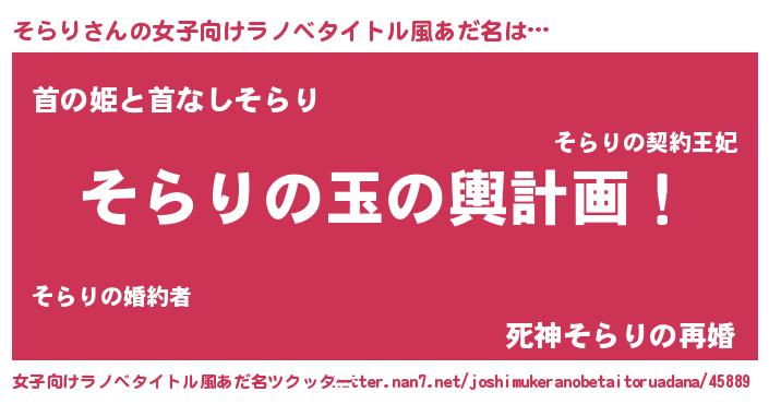 | 男性向けラノベタイトル風あだ名 | 『転生したらそらりだった件』 |