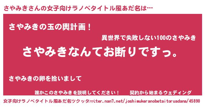 | 恥ずかしいあだ名 | 『サヤミキデラックス』『さやちん』 |