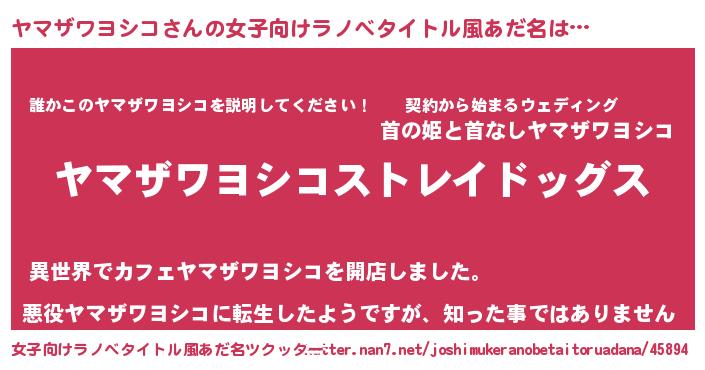 | 男性向けラノベタイトル風あだ名 | 『Re:ヤマザワヨシコから始める異世界生活』 |