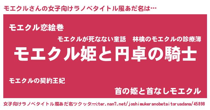 男性向けラノベタイトル風あだ名 | 『モエクルの憂鬱』『魔弾の王とモエクル』 |