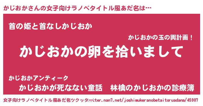 | 男性向けラノベタイトル風あだ名 | 『かじおかの嫁は女の子じゃないと思った?』 |