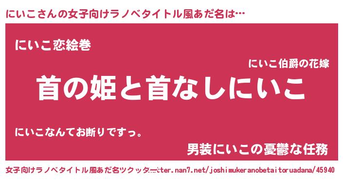 | 男性向けラノベタイトル風あだ名 | 『はたらくにいこさま!』 |