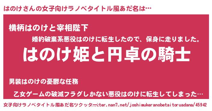 | 男性向けラノベタイトル風あだ名 | 『ハノケアートオンライン』 |