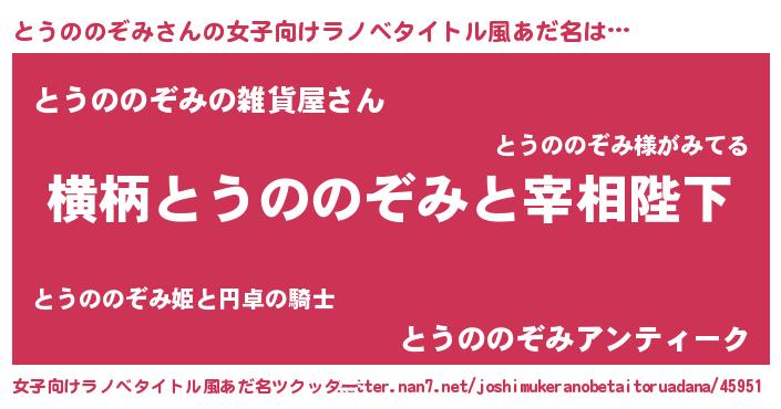 | 欧米人風あだ名 | 『アンジェラ・とうののぞみ』 |