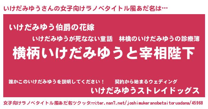 | 男性向けラノベタイトル風あだ名 | 『いけだみゆうに滅ぼされるだけの簡単なお仕事です』 |
