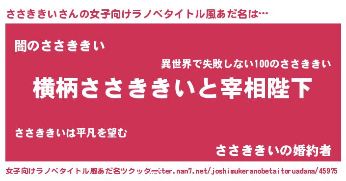 | 男性向けラノベタイトル風あだ名 | 『ささききいに滅ぼされるだけの簡単なお仕事です』 |