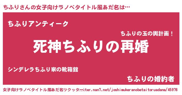 | 男性向けラノベタイトル風あだ名 | 『ノーゲーム・ノーチフリ』 |