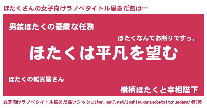 | 胡散臭い通販商品みたいなあだ名 | 『信頼と実績のサプリメント…その名も「ほたく」』 |