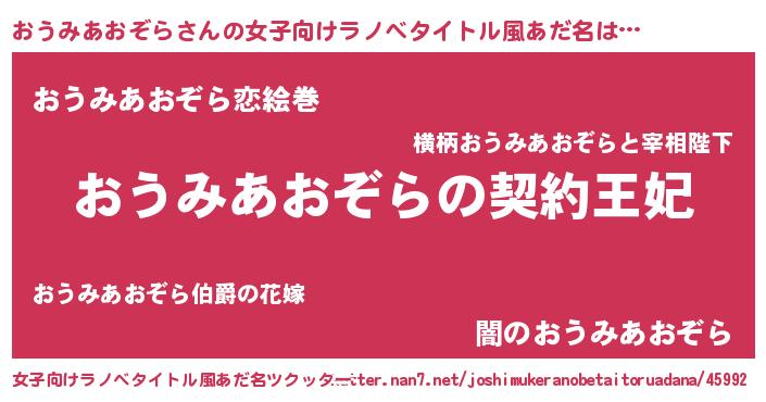 | 胡散臭い通販商品みたいなあだ名 | 『来世でも幸せになれる健康食品…その名も「おうみあおぞら」』 |