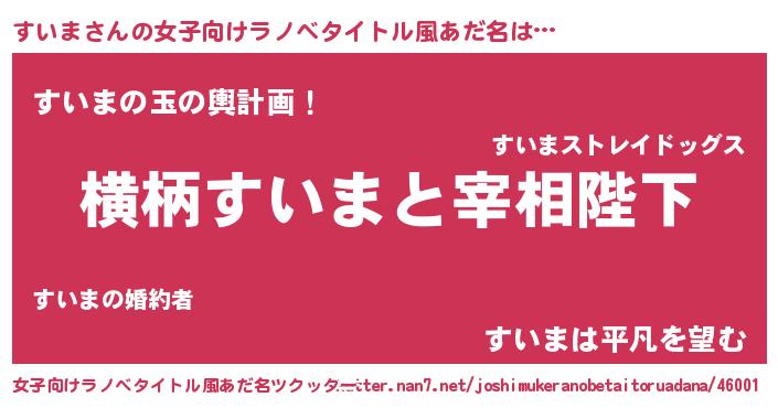 | ヒーロー風カッコイイあだ名 | 『炎刃騎士スイ』『超時空戦士スイマ』 |