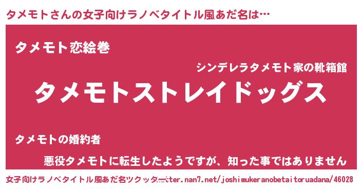 | 男性向けラノベタイトル風あだ名 | 『Re:タメモトから始める異世界生活』 |