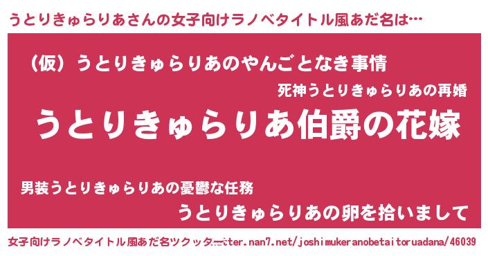 | 意味不明あだ名 | 『うとりきゅらりあフォーエバー』 |
