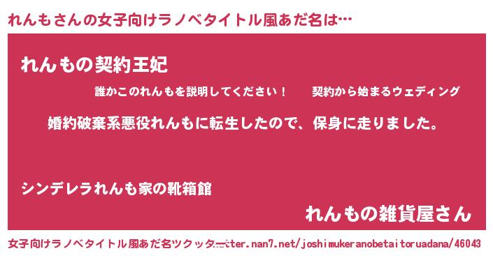 | 料理風あだ名 | 『れんもごはん』 |