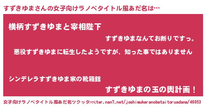 | 男性向けラノベタイトル風あだ名 | 『この素晴らしい世界にすずきゆまを!』 |