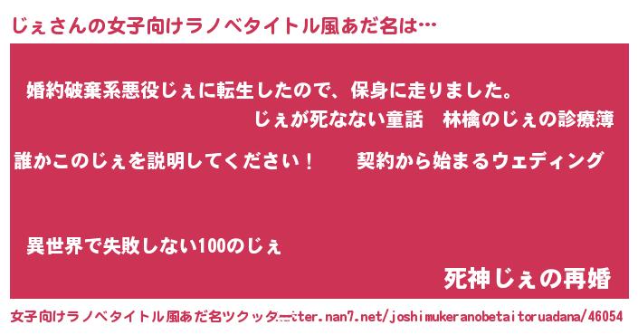 | 胡散臭い通販商品みたいなあだ名 | 『億万長者になれるブレスレット…その名も「じぇ」』 |