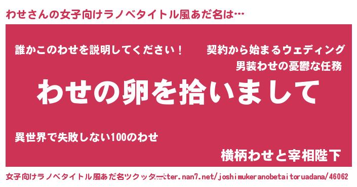 | 男性向けラノベタイトル風あだ名 | 『わせの嫁は女の子じゃないと思った?』 |