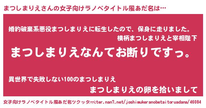 | 意味不明あだ名 | 『自称まつしまりえ』 |