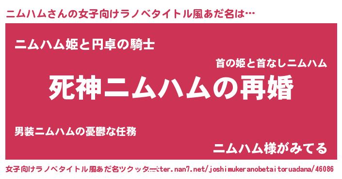 | ヘコむあだ名 | 『ニムっふぃ~』『ニムぷりん』 |