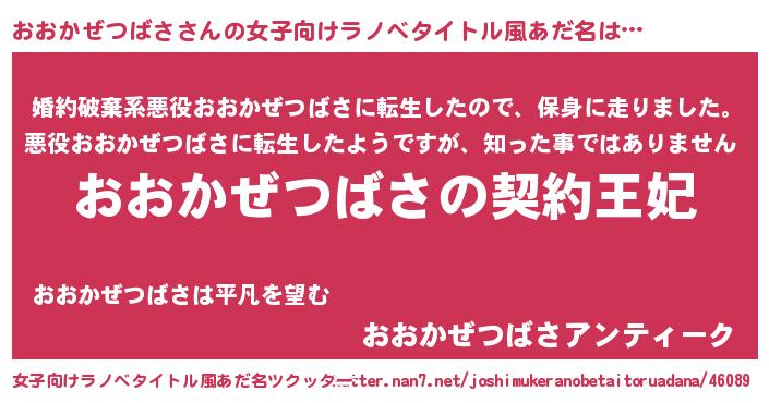 | 男性向けラノベタイトル風あだ名 | 『おおかぜつばさという概念が存在しない退屈な世界 』 |