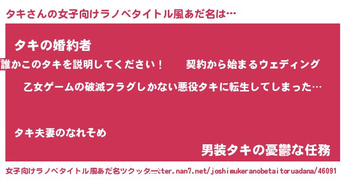 | ヒーロー風カッコイイあだ名 | 『仮面タキダー』『ウルトラタキマン』 |