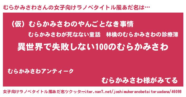 | 男性向けラノベタイトル風あだ名 | 『むらかみさわという概念が存在しない退屈な世界 』 |